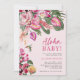 Tropical Baby Shower Invitation. Transform your baby shower into an unforgettable event with our 'Aloha Baby!' invitation, featuring a charming side frame and a cute hummingbird. Brimming with elegant modern touches and vibrant colours, this invitation showcases stunning watercolor artwork with lush green palm and monstera leaves, vivid magenta and fuchsia orchids, and delicate blush pink hibiscus flowers. Set the perfect tone for your celebration with this captivating design and make your baby shower truly special.