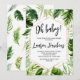 Bring the beauty of the tropics to your celebration with this Tropical Baby Shower Invitation. Designed with a fresh, gender-neutral vibe, this invite features elegant green tropical leaves and a shimmering gold border, perfectly balancing natural charm with a touch of glam. Ideal for garden, summer, or island-inspired baby showers, this tropical invitation is a fresh and festive way to invite your loved ones to celebrate. BBS194