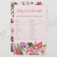 Tropical Baby Word Scramble. Add fun and excitement to your baby shower with our baby word scramble game. This game features elegant modern touches and vibrant colours, showcasing stunning watercolor artwork with lush green palm and monstera leaves, vivid magenta and fuchsia orchids, and delicate blush pink hibiscus flowers. Keep your guests entertained and engaged with this beautifully designed game that complements your tropical theme perfectly.