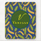 Tropical Banana Blue Leaf Monogram Script Mouse Mat