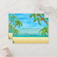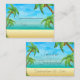 A tropical design featuring an illustration of a beach scene with palm trees and coconuts, setting the scene for a romantic tropical beach wedding. The design is featured on both sides of the invitation. The front allows for the name of the guest and table number. The back is fully customisable for the names of the bride and groom and the date of your own special occasion. These table place cards coordinate with the Tropical Beach and Palm Trees Wedding Collection. If you need assistance with the customisation for your special day or would like this on products not currently offered with this design, please contact us through our WeddingBazaar store.