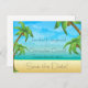 Tropical Beach and Palm Trees Save the Date Announcement Postcard