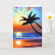 Blank card. AI generated palm tree, ocean and sunset, blue, yellow, orange and yellow retro colours. generativecontent