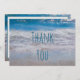 Wedding tropical ocean beach waves blue white coastal seaside nautical theme thank you flat cards. Beautiful water and sandy beach inspired summer vacation scene. Modern, chic, trendy, elegant, travel. Customise your blue script. Image copyright Marg Seregelyi Photography.