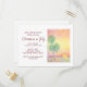 Festive Christmas in July party postcard invitation with a script typography and tropical beach design with palm trees at sunset. With red customisable lettering, you can add your own text. A great way to add a touch of summer to your holiday celebration.