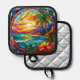 tropical beach cliffs stained glass art pot holder