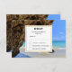 RSVP card with a scenic nature photograph. Beautiful turquoise blue sea with a sandy beach. A big brown rock provides some shade from the bright blue sky.