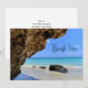 Thank you card with a scenic nature photograph. Beautiful turquoise blue sea with a sandy beach. A big brown rock provides some shade from the bright blue sky.