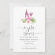 Watercolor beach wine tasting couples shower invitation featuring pink hibiscus designed to be quickly and easily customised to your event specifics.