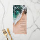 Elegant beach destination menu featuring a tropical sandy shoreline, ocean waves, romantic palm leaves, string lights, and a text template that is easy to personalise.