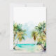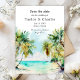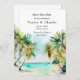 This elegant and beautiful watercolor save the date invitation features a beach, blue sky and palm trees. The text combines handwritten script and sans serif fonts for a stylish and modern look. This is perfect for a summer beach or tropical destination wedding.