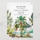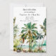 This elegant and beautiful watercolor save the date invitation features a beach and palm trees. The text combines handwritten script and sans serif fonts for a stylish and modern look. This is perfect for a summer beach or tropical destination wedding.