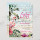 A lovely tropical beach and flamingo themed 60th birthday invitation with palm trees and string lights and matching beachy reverse side. Easy to edit or delete the available text fields to personalise the information with your own details for a professional and custom finish. Matching items are available in this boho flamingo collection. Please visit my shop to see the full range including, return address labels, stickers and envelopes.