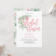 Tropical seaside flowers typography bridal shower invitations
