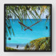 Tropical Beach framed with Palm Fronds Square Wall Clock