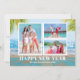 Happy New Year cards share your favourite beach vacation or warm weather photos with a fun tropical beach, water and palm trees.
