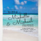Tropical Beach Ocean Tide with Hearts in the Sand Wedding all in one Tri-fold invitations that come with the Wedding invitation, response cards, RSVP, Details and and photo of the couple.Features a beautiful beach and blue ocean scene with sand hearts near the surf. Great for a destination wedding in the islands, Hawaii, California coast, Florida, or Mexico!