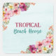 Tropical Beach House Pink Flowers Floral Botanical Square Sticker