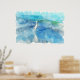 Tropical Beach in Teal Aqua Turquoise Blue with Wh Poster