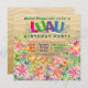 Luau birthday party invitation with colourful watercolor tropical plants and flowers on a beach sand background. You can easily customise this fun luau birthday party invitation for your event by simply adding your details.