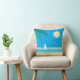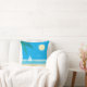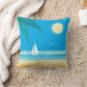 This fun cushion is decorated with a tropical beach scene accented with starfish, seagulls, a sailboat and palm leaves on a bright blue sky background, making it the perfect summertime accessory for the living room, bedroom, cottage, patio, deck or pool area.