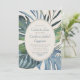 Invite your guests to paradise for a day with this elegant tropical palm leaves design. Featuring a spray of assorted tropical leaves in serene blues and greens and a stylised rattan pattern on the back, this design embodies a breezy day underneath the palm trees. Perfect for your casual beach affair or pool bash. Shop the collection today for matching stationery, and get away to the perfect day!