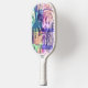 Catch the pickleball wave with this super cool paddle featuring a tropical palm pattern set against a colourful abstract background. Add your name, phone number or custom text to the bottom edge so you'll never lose your paddle again!! Whether you're heading out for rec or competitive play, this unique, one of a kind custom paddle will definitely become your favourite - and you're sure to get compliments. A perfect gift for beginners and experienced players alike - get two and match with your pickleball partner!!