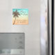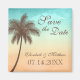 A tropical blue sky and beach sand texture with a brown palm tree illustration. Stylish and trendy tropical wedding save the date magnet. Perfect for a destination wedding.
