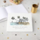 Tropical Coastal Palm Trees Sketch Watercolor Theme Collection.- it's an elegant script Sketchy watercolor Illustration of coastal paradise, beach palm trees, cottage- lively green in colour, with the backdrop of dusky blue mountain range. Perfect for your Coastal Hawaiian & Mexican destination wedding & parties. It’s very easy to customise, with your personal details. If you need any other matching product or customisation, kindly message via Zazzle.