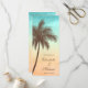 A tropical blue sky and beach sand texture with a brown palm tree illustration. Stylish and trendy tropical wedding program. Perfect for a destination wedding.