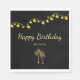 Tropical Beach Birthday party napkin, with an elegant palm trees design on a black background. With customisable gold typography lettering, you add your own information. A glamourous addition to your beach inspired celebration.