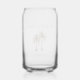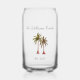 Tropical beverage can glass with a palm trees drawing design. With customisable lettering, you add your own family name and year. A great addition to your summer kitchen decor and entertaining.
