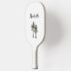 Elegant personalised pickleball paddle, with a Tropical palm trees design. Elegant Black script lettering can be customised with your own text. A beach inspired accessory for your favourite game.