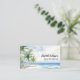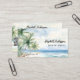 A watercolored tropical beach with palm trees as background. Personalise and add your name on the front. Back: Templates for Your name, title, phone number, mail and website address, QR-code.  Facebook and Instagram icons.