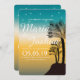 Tropical Beach Palm Trees Starry Lights Wedding Invitation