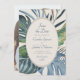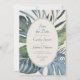 Invite your guests to paradise for a day with this elegant tropical palm leaves design. Featuring a spray of assorted tropical leaves in serene blues and greens and a stylised rattan pattern on the back, this design embodies a breezy day underneath the palm trees. Perfect for your casual beach affair or destination celebration in the tropics. Shop the collection today for matching stationery, and get away to the perfect day!