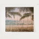 Custom high definition tapestry featuring a relaxing tropical beach with palm trees. Ideal for creating a relaxed environment, unique wall art, photo booth backdrop, or meeting background.