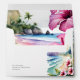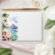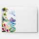 Tropical beach hibiscus wedding template envelopes, watercolor beach pink hibiscus blooms palm leaves for destination beach weddings envelopes