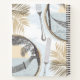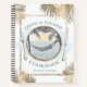 Super cute keeper recipe notebook for cooking and baking recipes featuring a tropical beach scene plate and silverware with palm fronds in aged vintage style and colours.