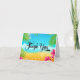 A tropical beach themed thank you card. Featuring a modern luau design with palm tree branches, pink Hibiscus flowers and seashells on a tropical beach. Perfect for a sweet 16 birthday party or Bat Mitzvah.