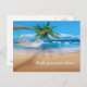 Postcard shown with a photo print of a beautiful tropical beach. Wish you were here...