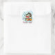 A fun and modern illustration of a tropical beach scene with palm trees, oceans surf with surfers, a beautiful bikini clad woman, beautiful flowers and an old Hippy van bus. Great design for the beach lover. The phrase "Surf's up!" can be customised.