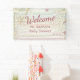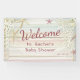 Tropical Beach Seashell Modern Boho Baby Shower Chic Modern Party Sign Banner features a pretty beach themed design in pastel colours with seashells and the text "Welcome" in elegant pink calligraphy script typography. Perfect for baby shower party decor. Designed by Evco Studio www.zazzle.com/store/evcostudio