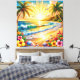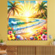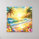 Tropical Beach Sunrise with Palm Trees, Waves Canvas Print