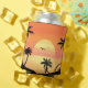 Tropical Beach Sunset Palm Tree Silhouette Art Can Cooler