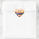 Elegant favour sticker featuring modern typography against a romantic sunset background.