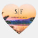 Tropical Beach Sunset String Lights Wedding Heart Sticker