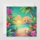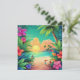 Tropical Beach Sunset with Hibiscus Flowers Card