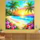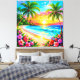 Tropical Beach Sunset with Palm Trees Canvas Print