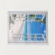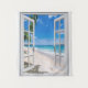 Tropical beach Ocean view, fake window scene, for a windowless office wall. Fun, realistic optical illusion scenic wall hanging for an office or study wall.